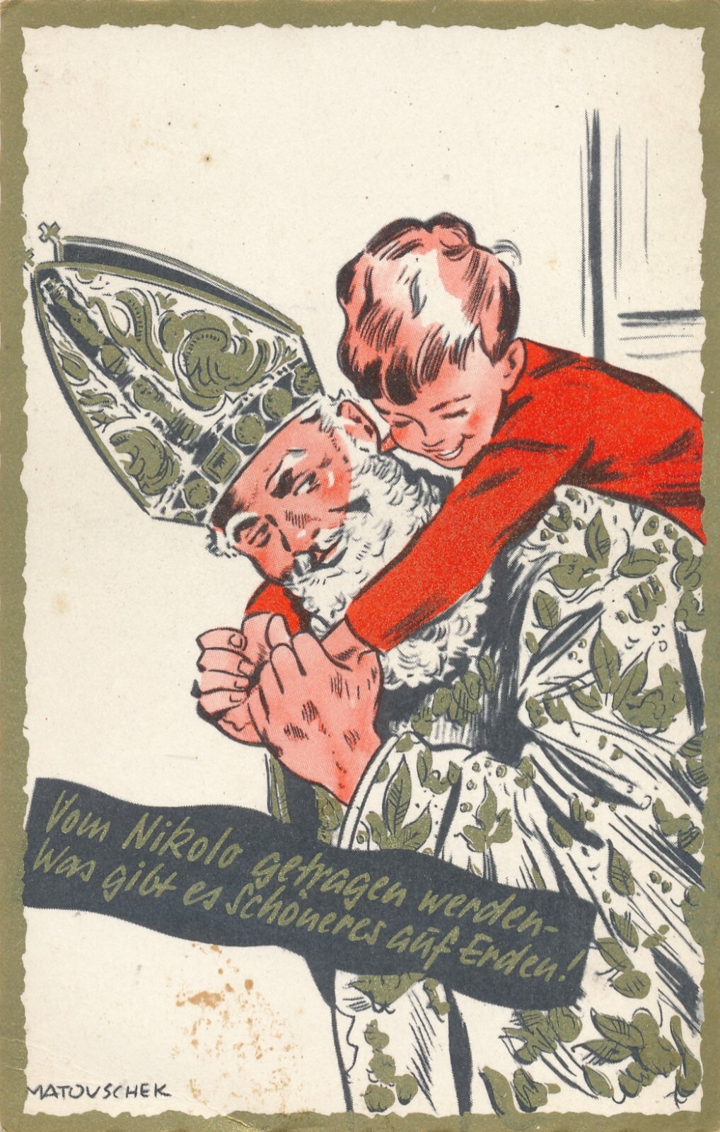 Motiv - Karte vom Nikolo Nikolaus mit Kind am Rücken (11343)