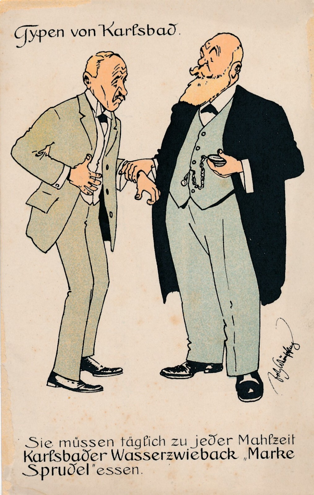 Motiv - Karte von Fritz Schönpflug Typen von Karlsbad Ansichtskarte (13691)