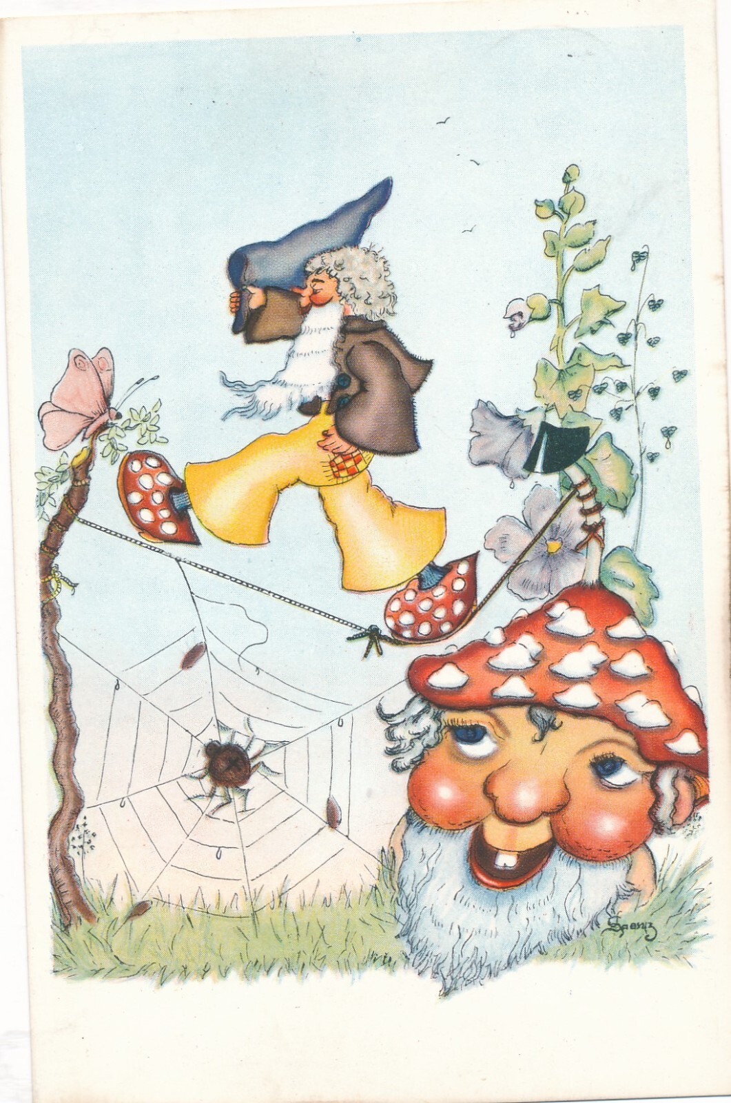 Motiv - Karte von zwei Zwergen mit Pilz und Spinnennetz Ansichtskarte (10046)