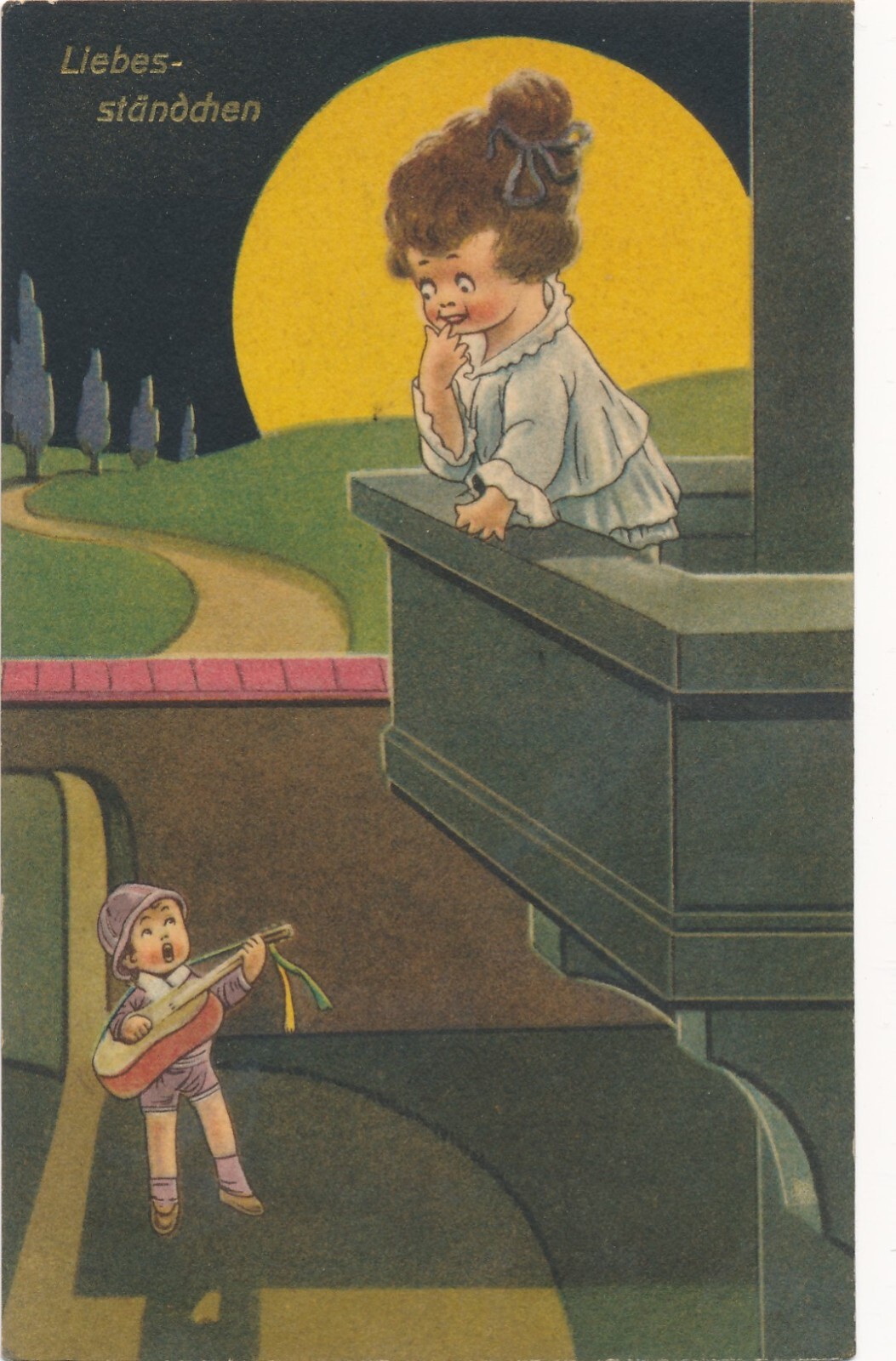 Motiv - Karte zwei Kinder Liebesständchen Ansichtskarte (8942)