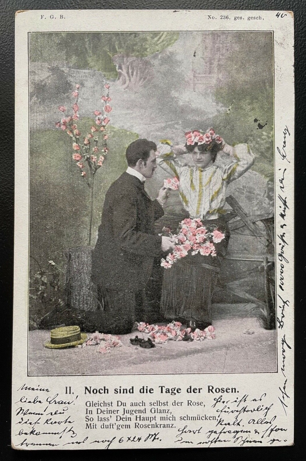 Noch sind die Tage der Rosen Mann Frau Paar Rosenkranz Jugend Hut Kleid 400591 A