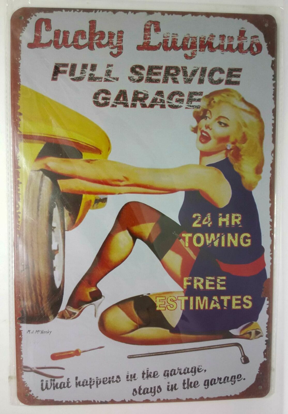 Nostalgie Retro Blechschild Auto Frau Full Service Garage 30x20 50156