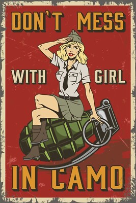 Nostalgie schild dont mess girl camo granate 12x18 / 20x30 / 30x40 blech od.holz