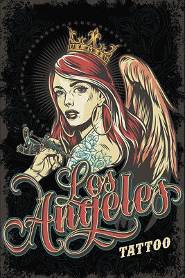Nostalgie schild los angles tattoo frau 12x18 / 20x30 / 30x40 blech od. holz