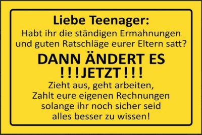 Nostalgie schild sprüche eltern teenager 12x18/20x30/30x40 blech od. holz