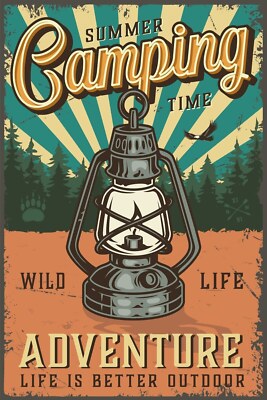Nostalgie schild summer camping time laterne 12x18 / 20x30 / 30x40 blech od.holz