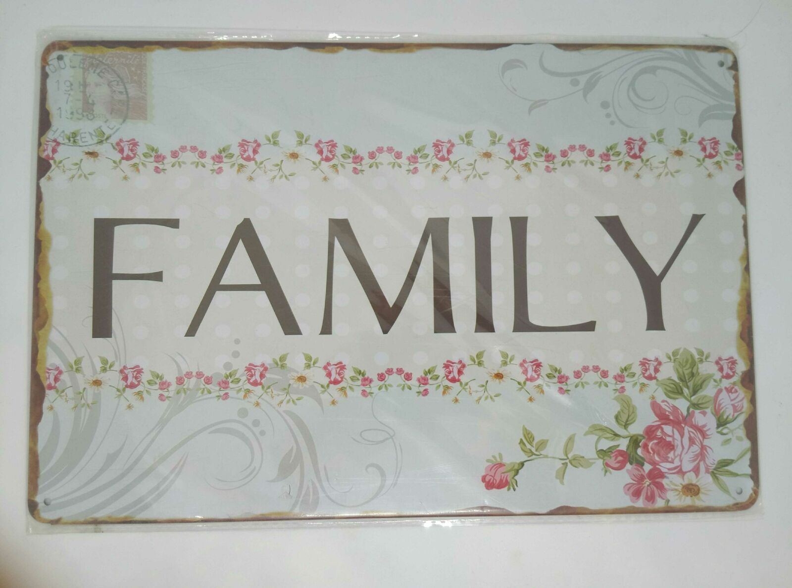 Nostalgie Vintage Retro Blechschild "family" Blumen flowers 30x20 50342
