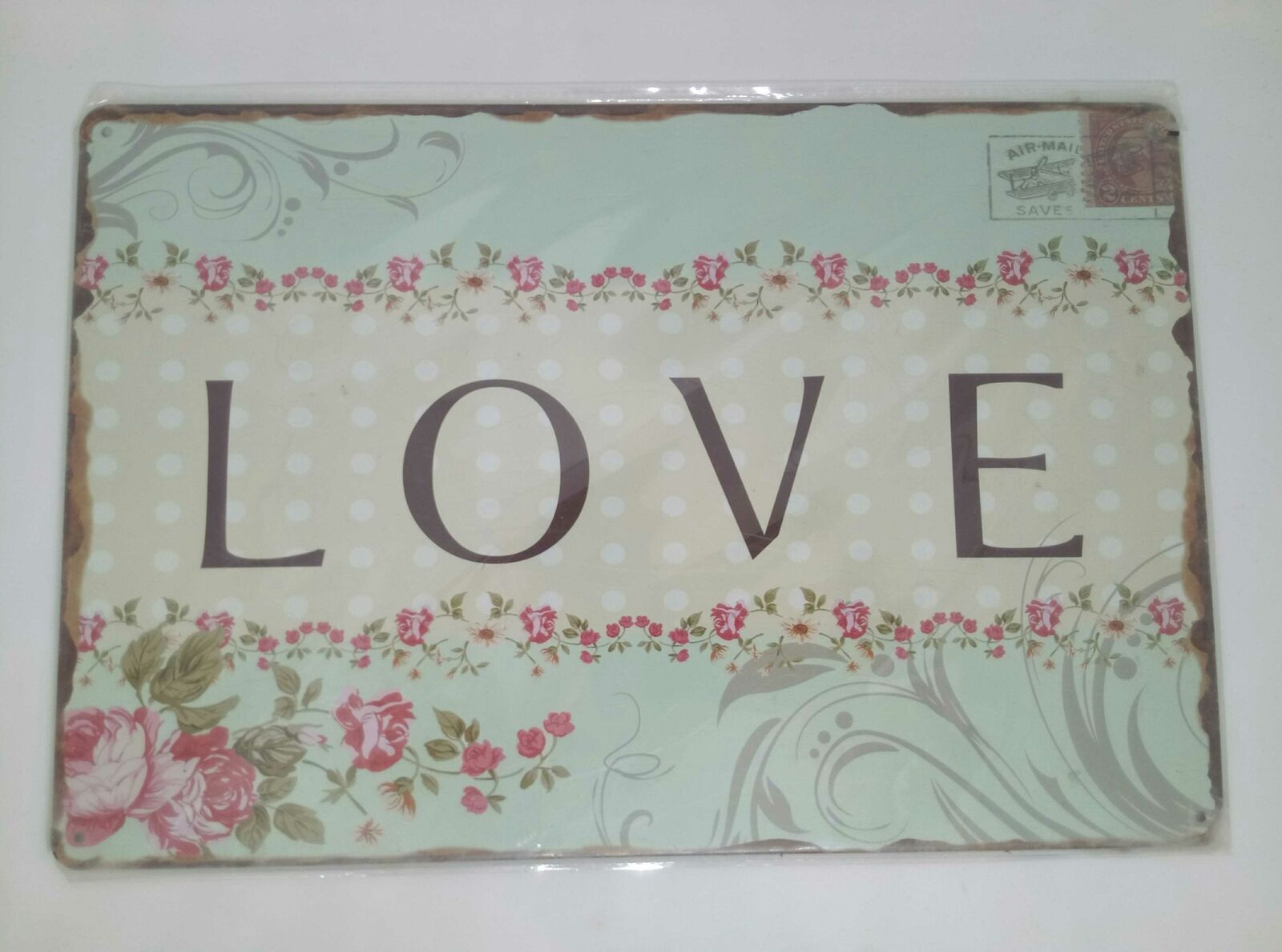 Nostalgie Vintage Retro Blechschild "love" Blumen flowers 30x20 50341