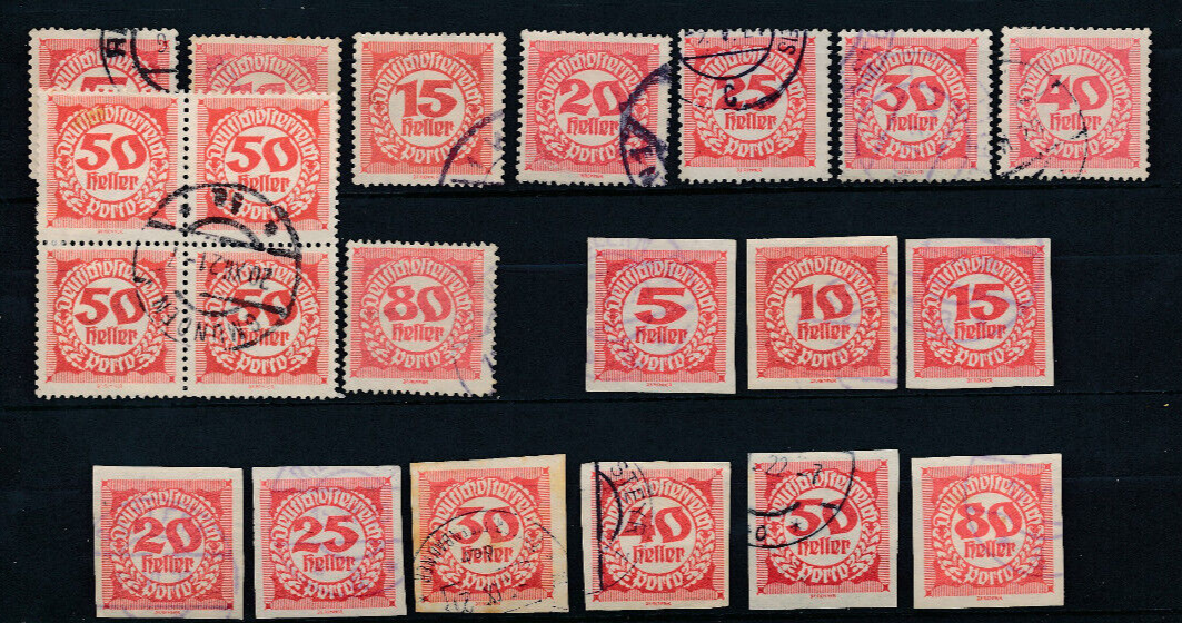 Portomarken 1919 - 21 Ank 75 - 83 und 93 - 101 gestempelt (6255)