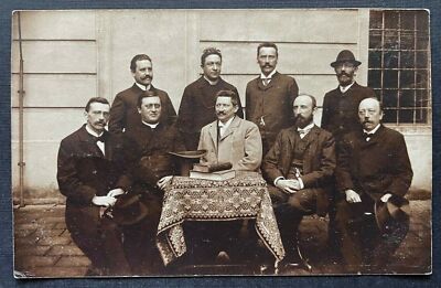 Porträt Gruppenaufnahme Männer Anzug Krawatte Tracht Jacke Bart Tisch 400410 TH