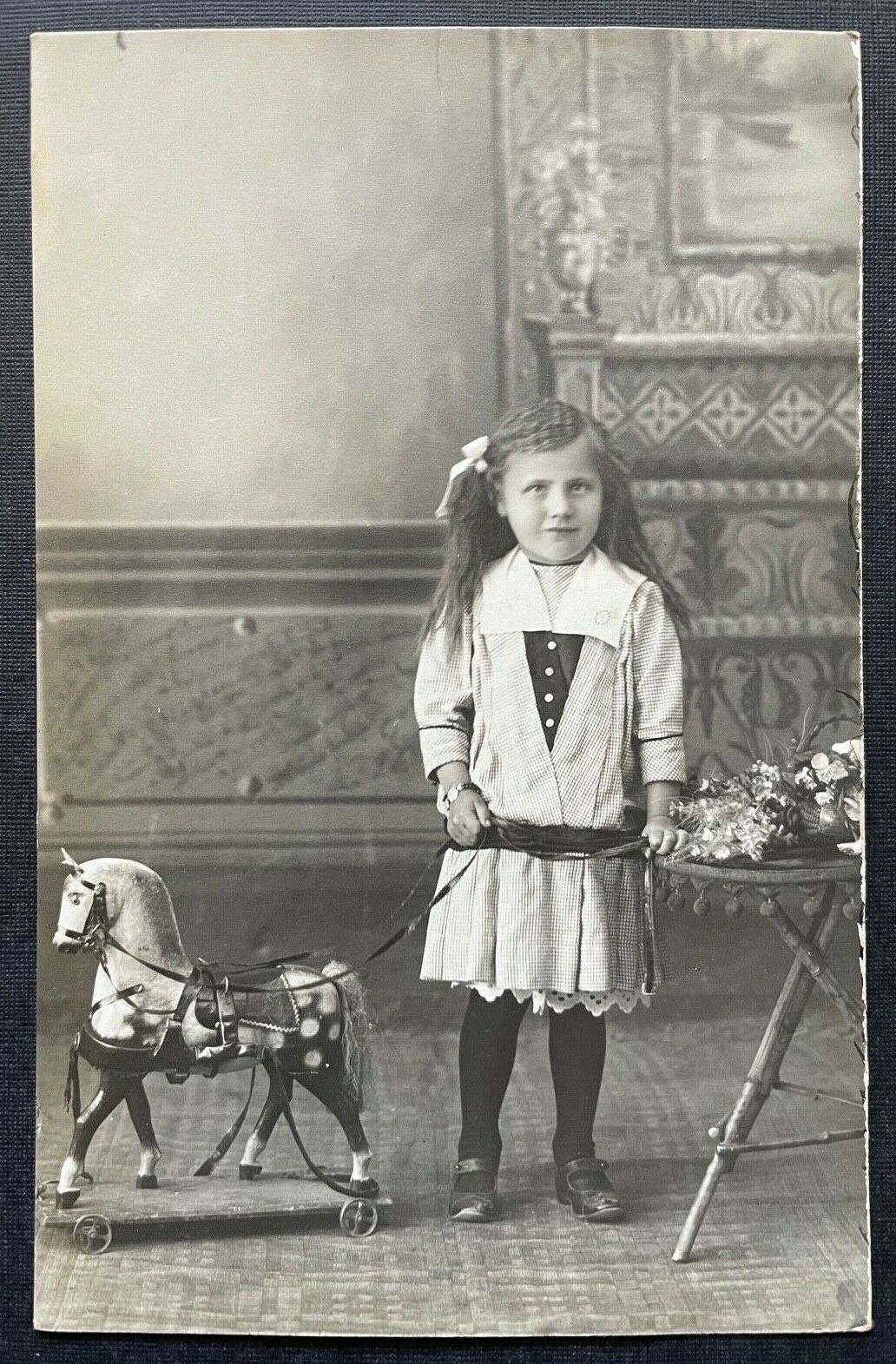 Porträt Mädchen Kind Pferd Spielzeug Kleid Tracht Zöpfe 400302 TH A