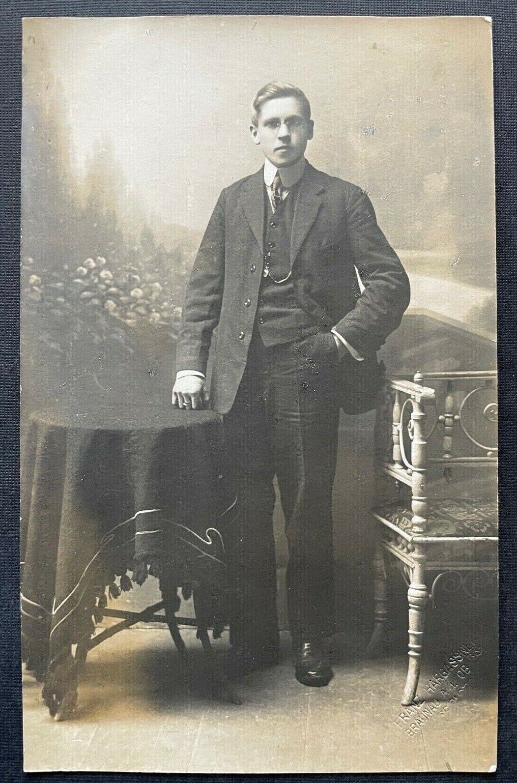 Porträt Mann Anzug Krawatte Sakko Jacke Tracht Brille Tisch 400318 TH F
