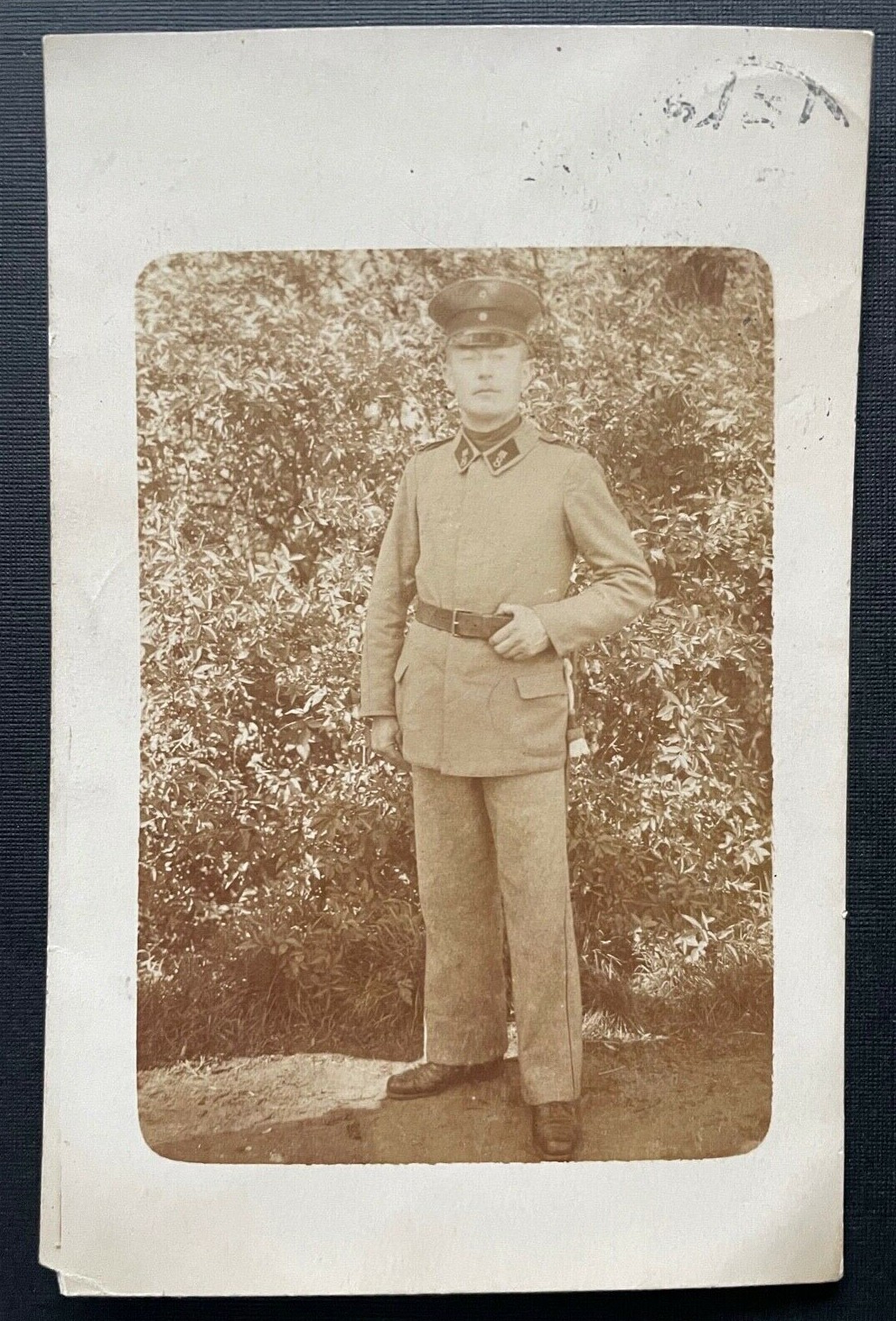 Porträt Soldat Uniform Schirmmütze Kragen Gürtel Militär Krieg 401041 TH A