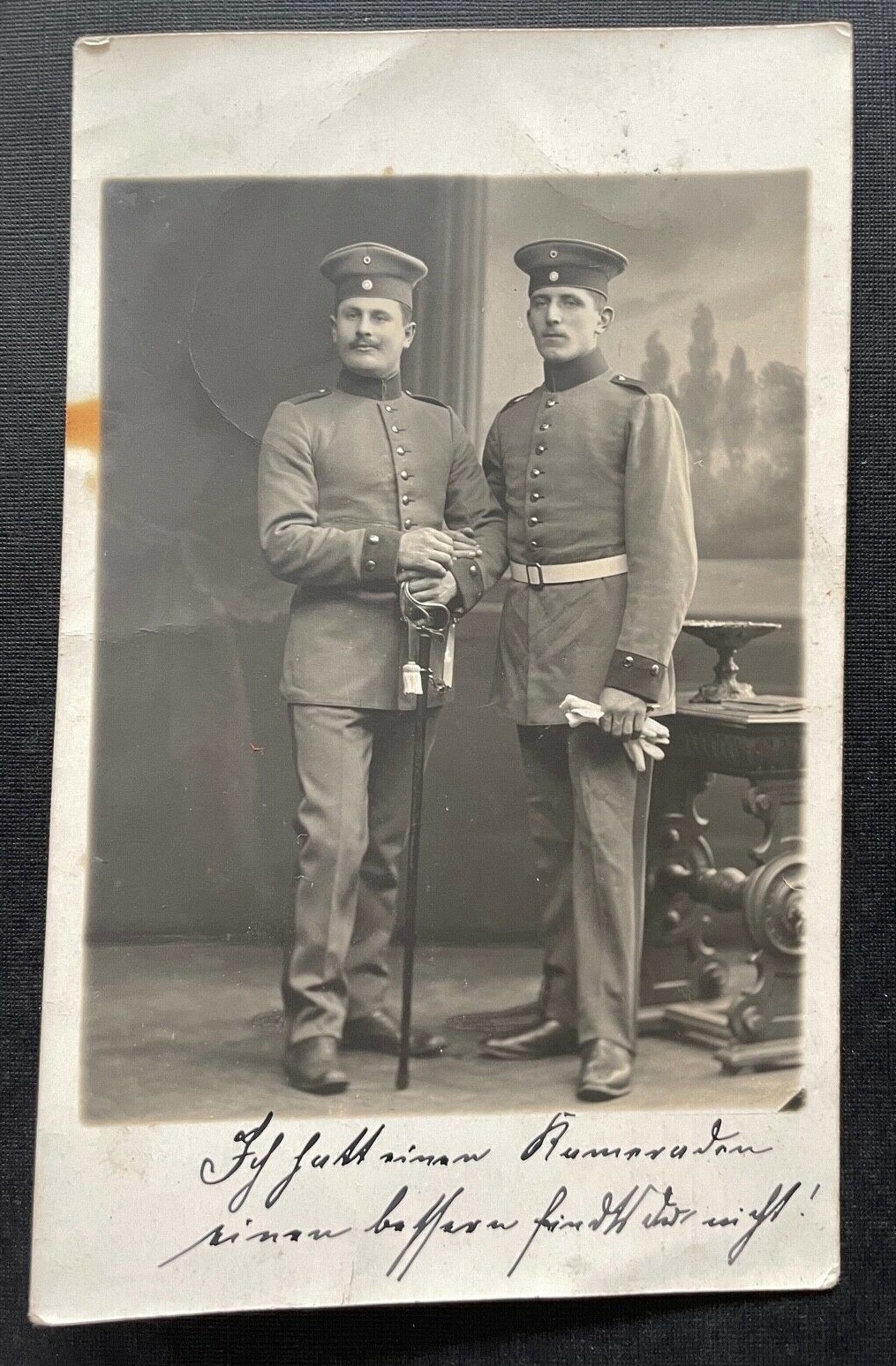 Porträt Soldaten Uniform Schirmmütze Degen Bart Militär Krieg Landshut 410105 TH