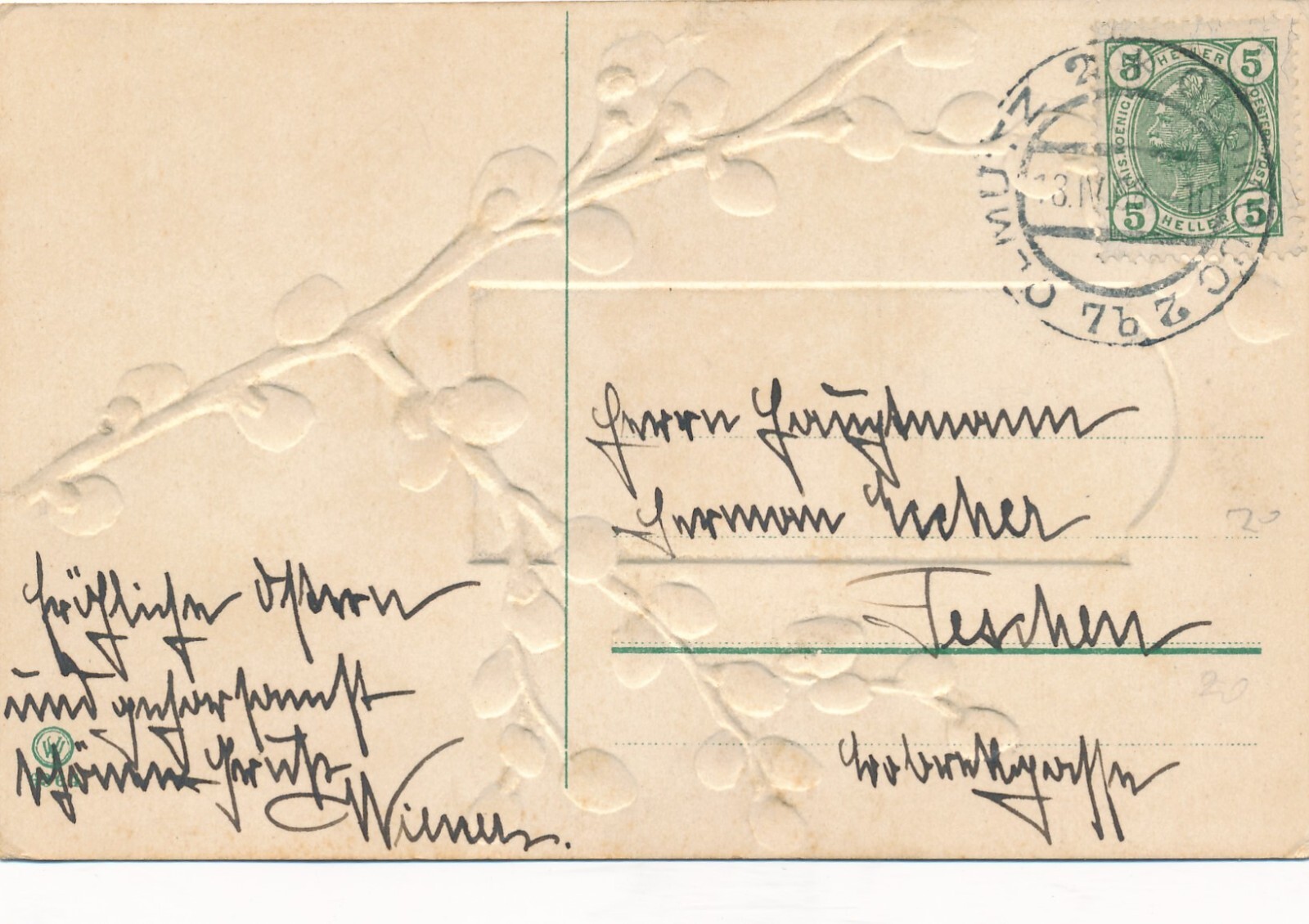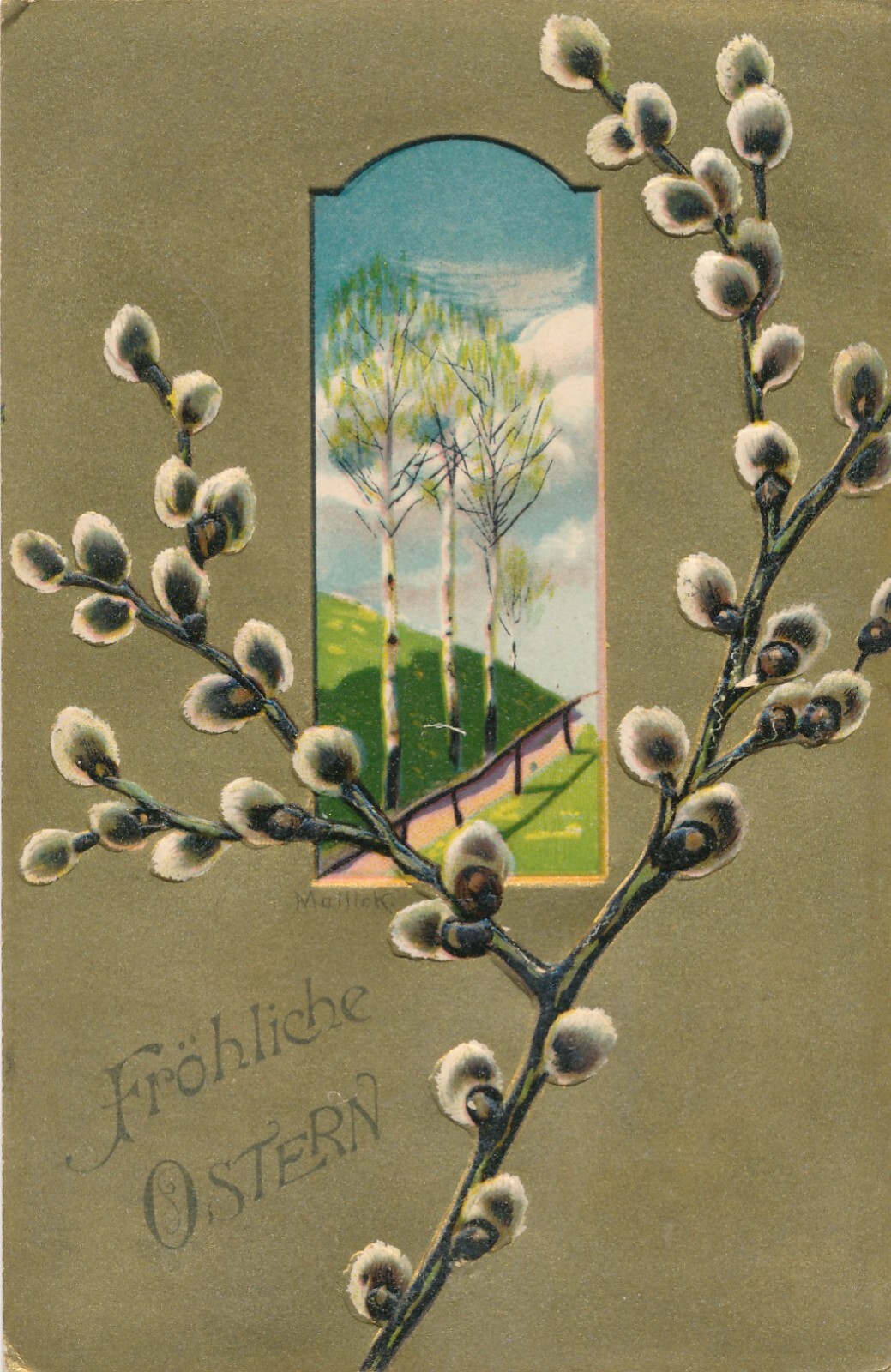 Präge - Motiv - Karte Frohe Ostern mit Palmkatze Ansichtskarte (12658)