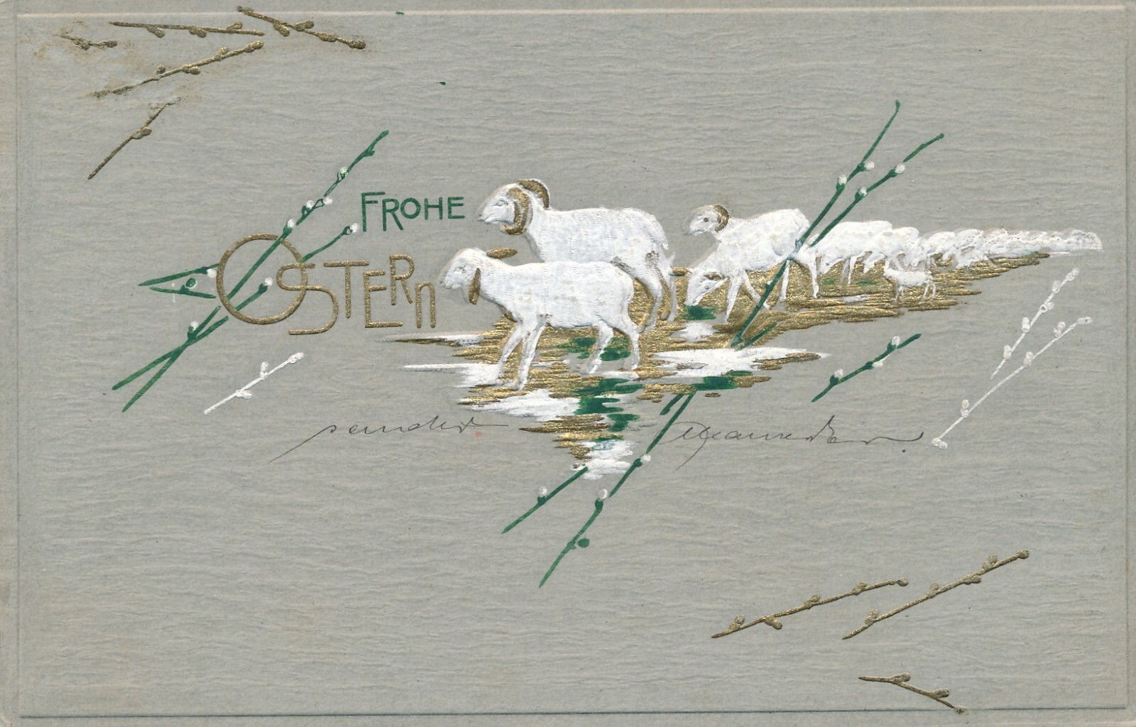 Präge - Motiv - Karte Frohe Ostern mit Schafen Ansichtskarte (12652)