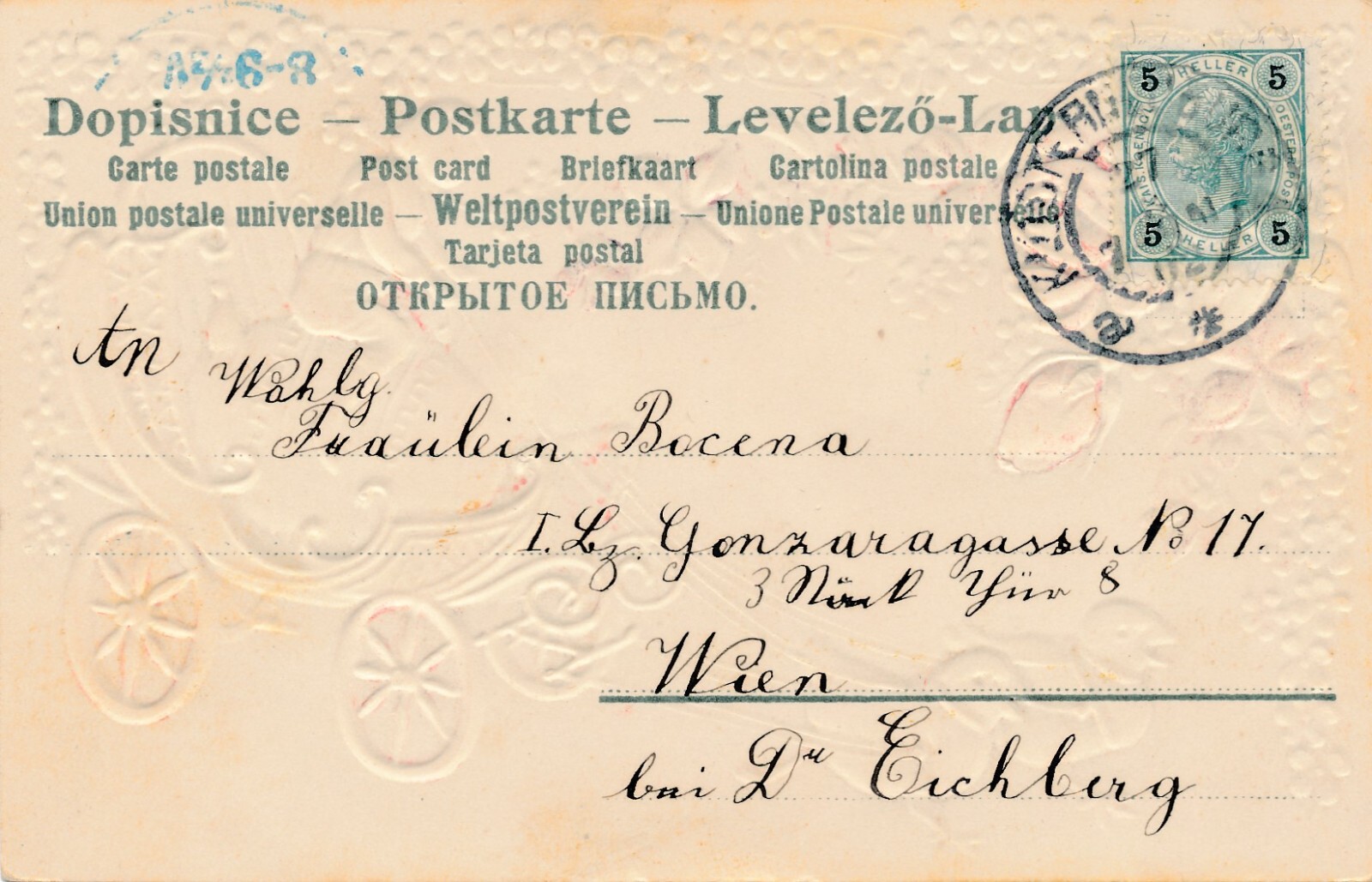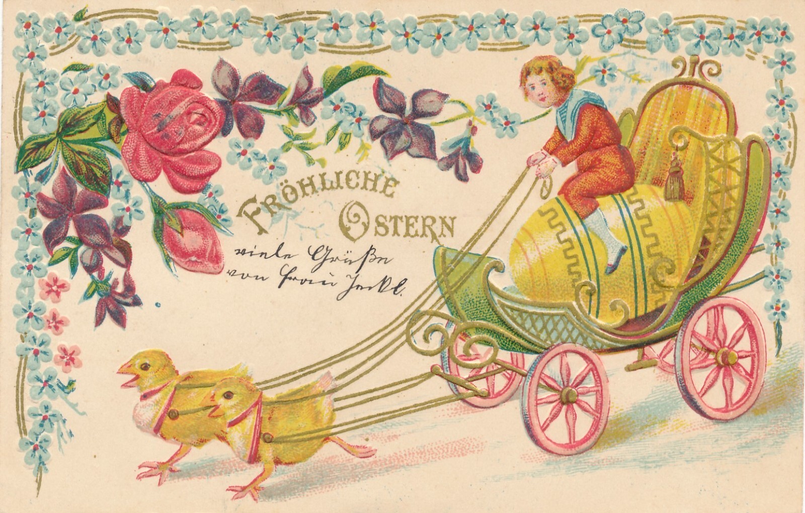 Präge - Motiv - Karte Fröhliche Ostern Kücken Kutsche Ansichtskarte (11852)