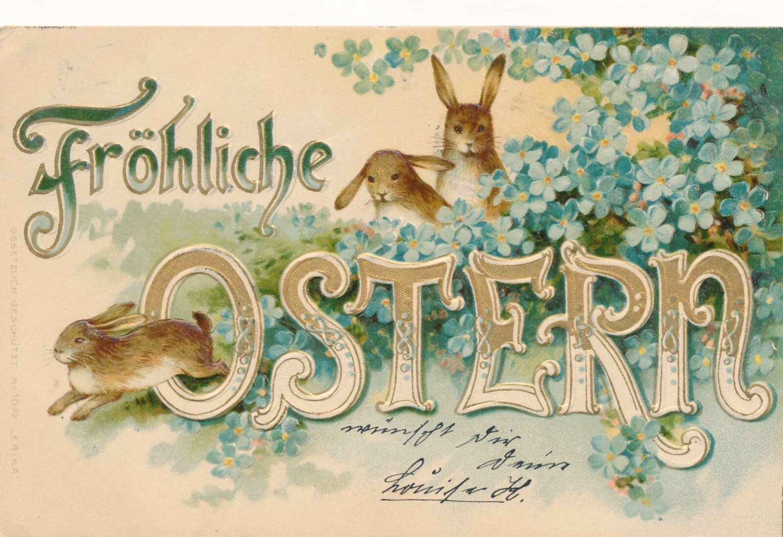 Präge - Motiv - Karte Fröhliche Ostern mit Hasen Ansichtskarte (11855)