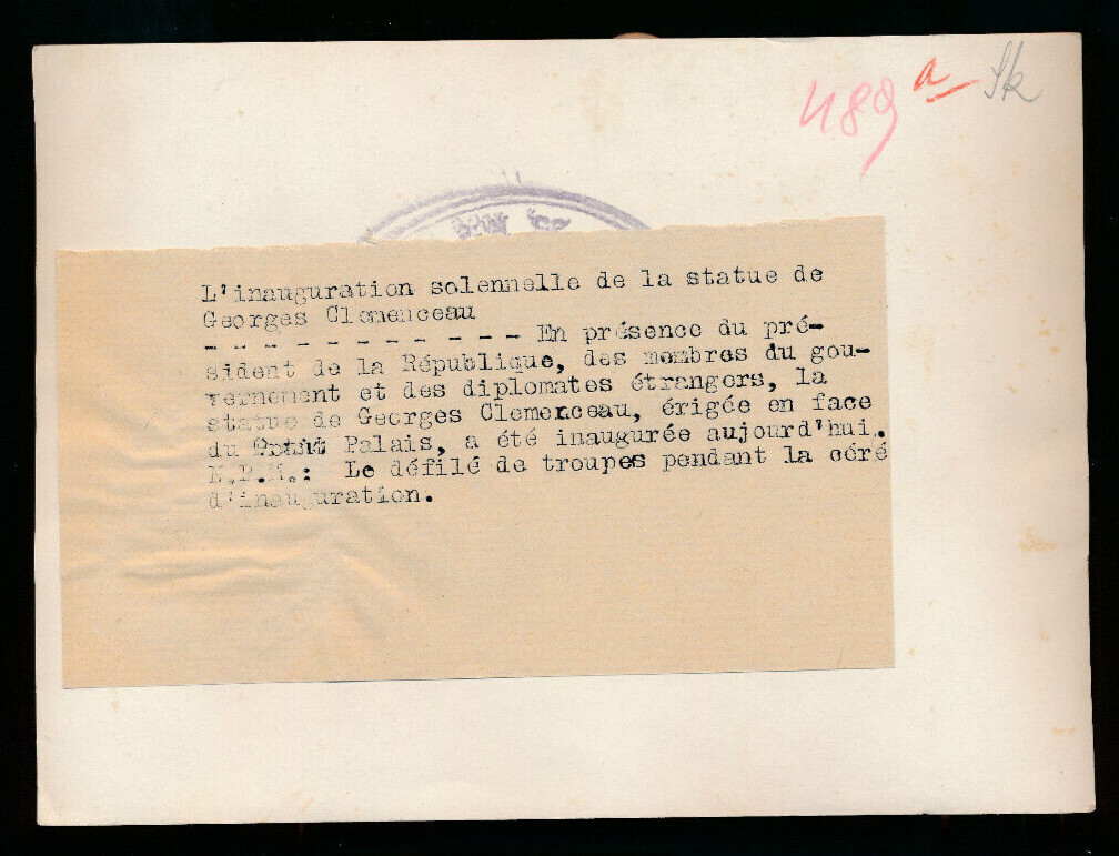 Pressefoto, Einweihung der Statue des Kriegsministers George Clemenceau ... (P4)