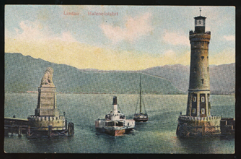 Relief - Karte aus Lindau Hafeineinfahrt mit Dampfer und Leuchtturm Bayern (631)