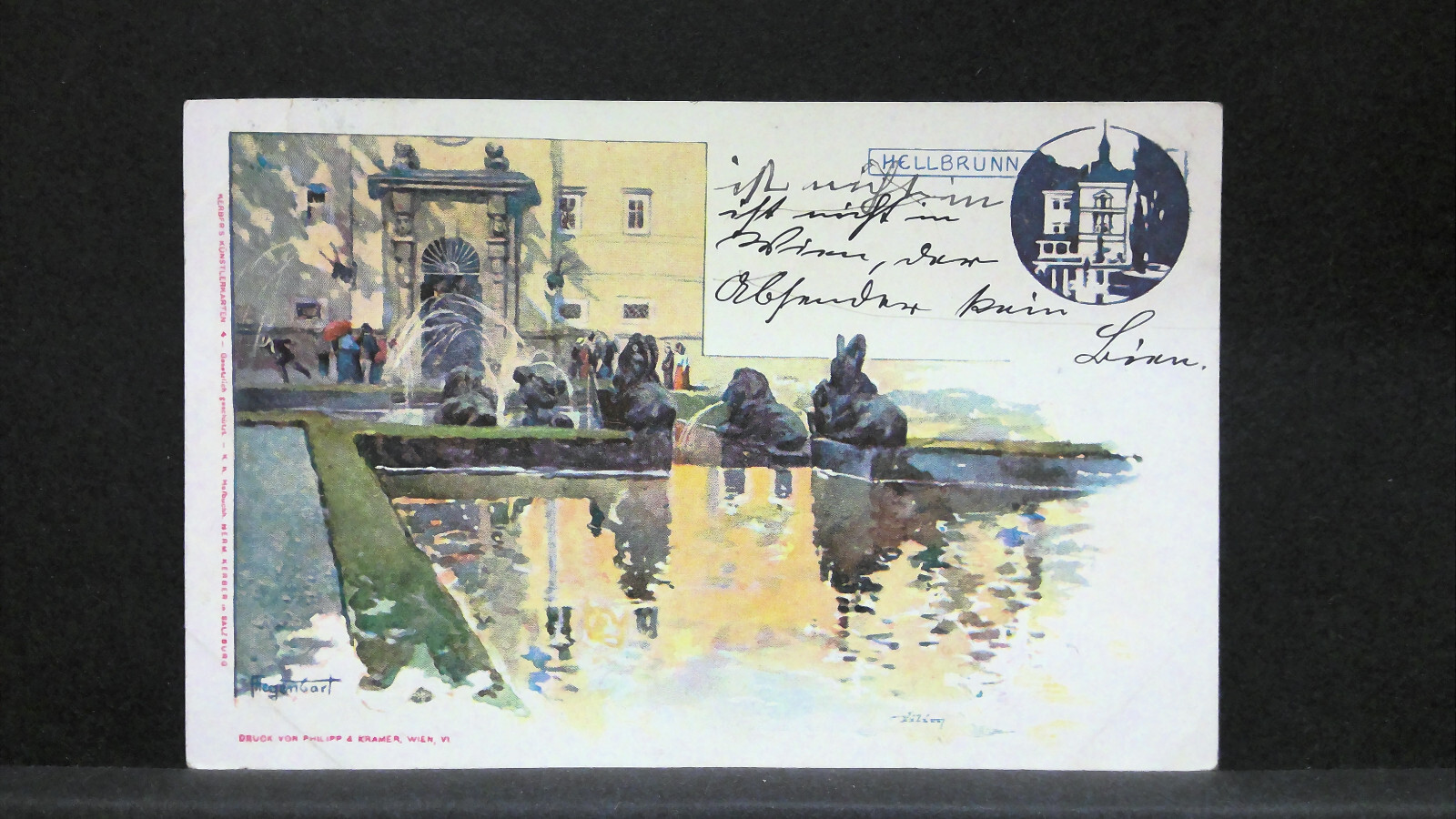 Salzburg Hellbrunn Zeichnung Künstlerkarte JW212