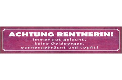 Schild achtung rentnerin immer gut gelaunt keine geldsorgen sonnengebräunt fit