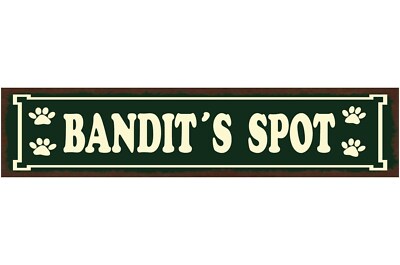 Schild bandit's spot hund platz haus tier liebe pfote 46 x 10 blech od. holz