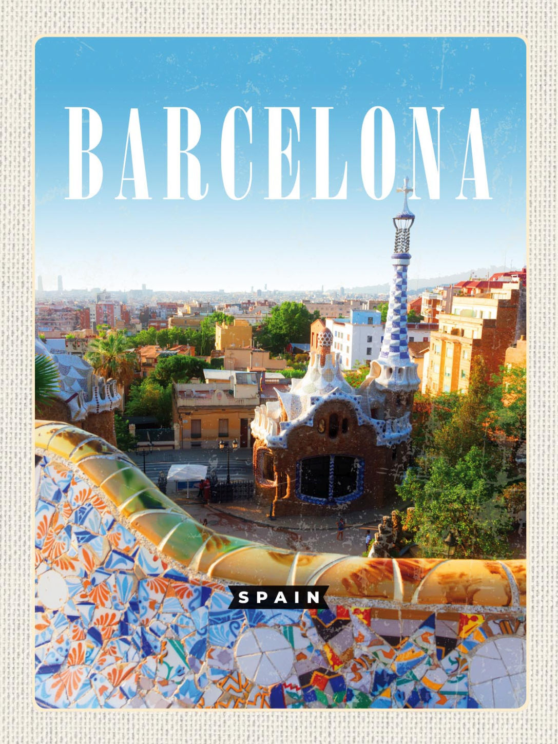 Schild Barcelona Spain Spanien Park Güell 12x18 20x30 30x40 Blech/Holz