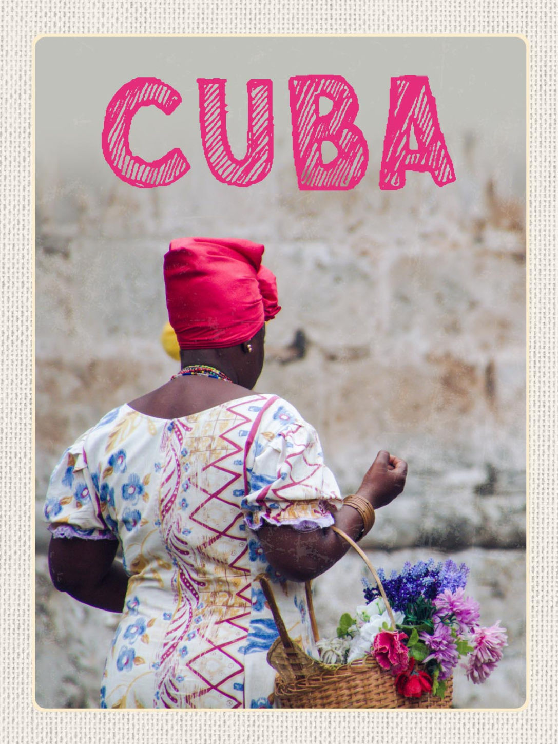 Schild Cuba Kuba Frau Blumen Korb 12x18 20x30 30x40 Blech od. Holz