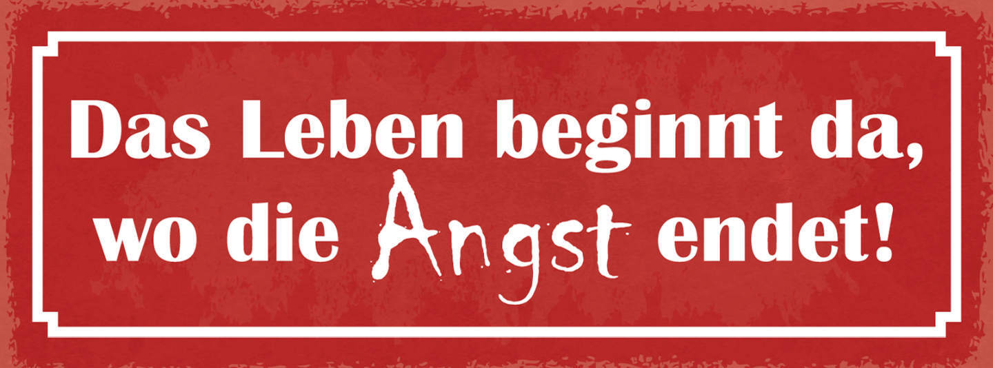 Schild Das Leben Beginnt Da Wo Die Angst Endet Furcht 27x10 Blech od.Holz