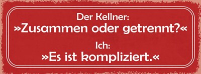 Schild der kellner: zusammen oder getrennt ich es ist kompliziert paar 27x10