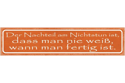 Schild der nachteil am nichtstun ist dass man nie weiß wann man fertig ist 46x10