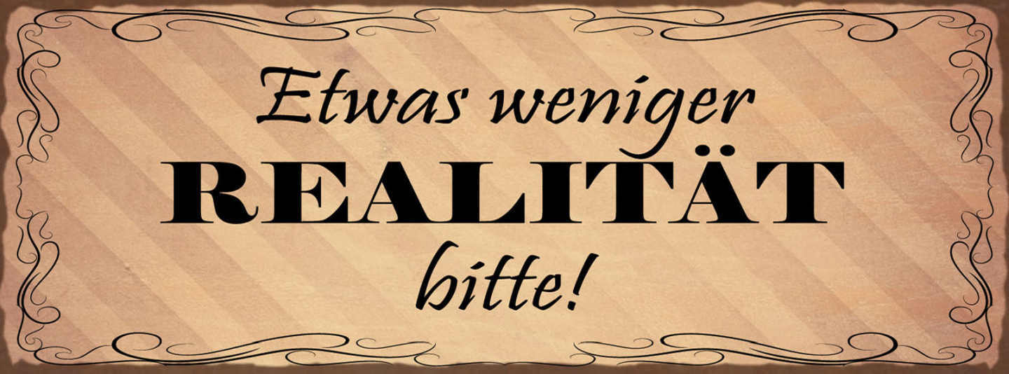 Schild Etwas Weniger Realität Bitte Fantasie Traum Leben 27x10 Blech od.Holz
