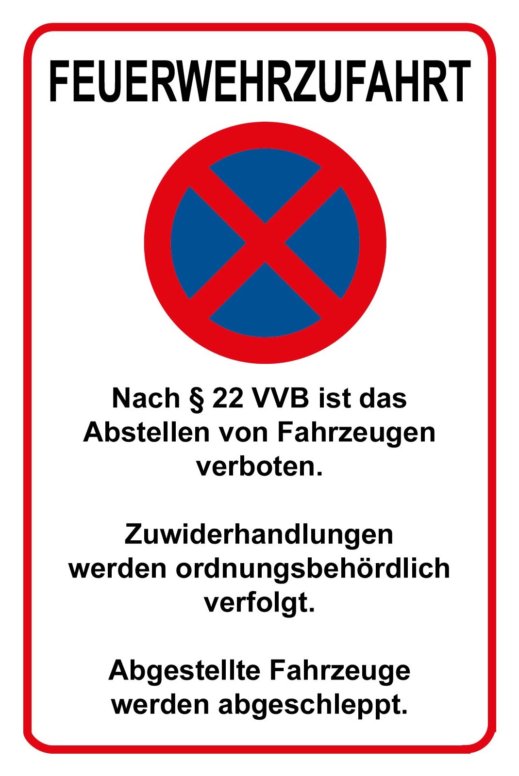 Schild Feuerwehrzufahrt Halteverbot 12x18 / 20x30 / 30x40 Blech od. Holz