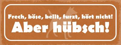 Schild frech böse bellt furzt hört nicht aber hübsch hund 27x10 blech od.holz