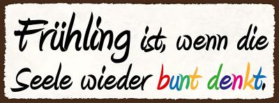 Schild frühling ist wenn die seele wieder bunt denkt lenz 27x10 blech od.holz