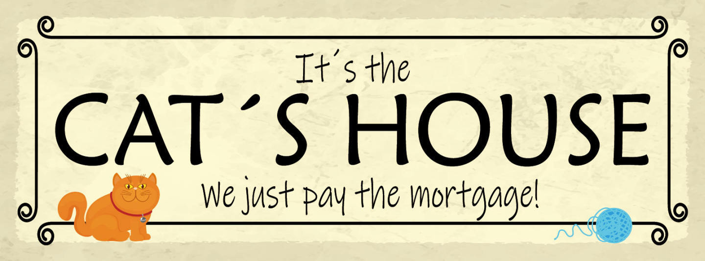 Schild It's The Cat House We Just Pay The Mortgage Katze 27x10 Blech od.Holz