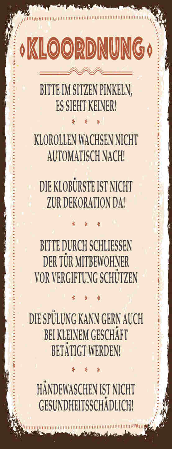 Schild Klo Ordnung Bitte Im Sitzen Pinkeln Klorollen Hände Waschen WC 27x10