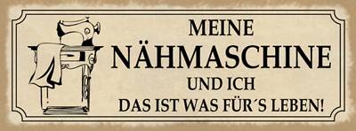 Schild meine nähmaschine & ich das ist was für's leben hobby 27x10 blech od.holz
