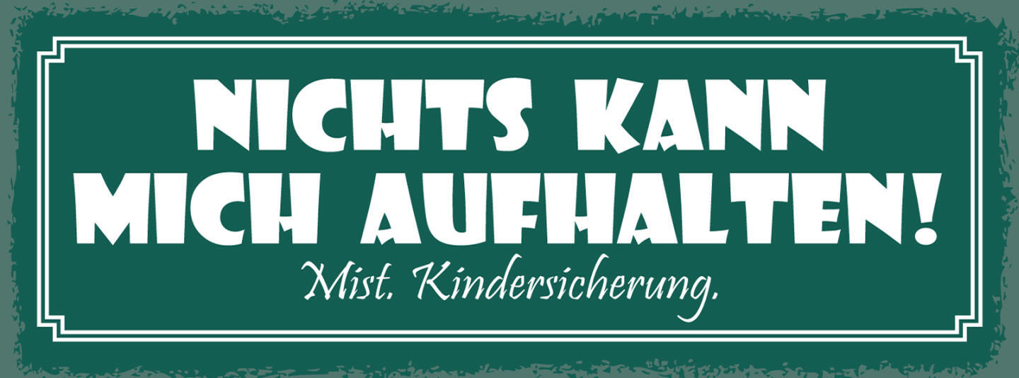 Schild Nichts Kann Mich Aufhalten Mist Kindersicherung 27x10 Blech od.Holz