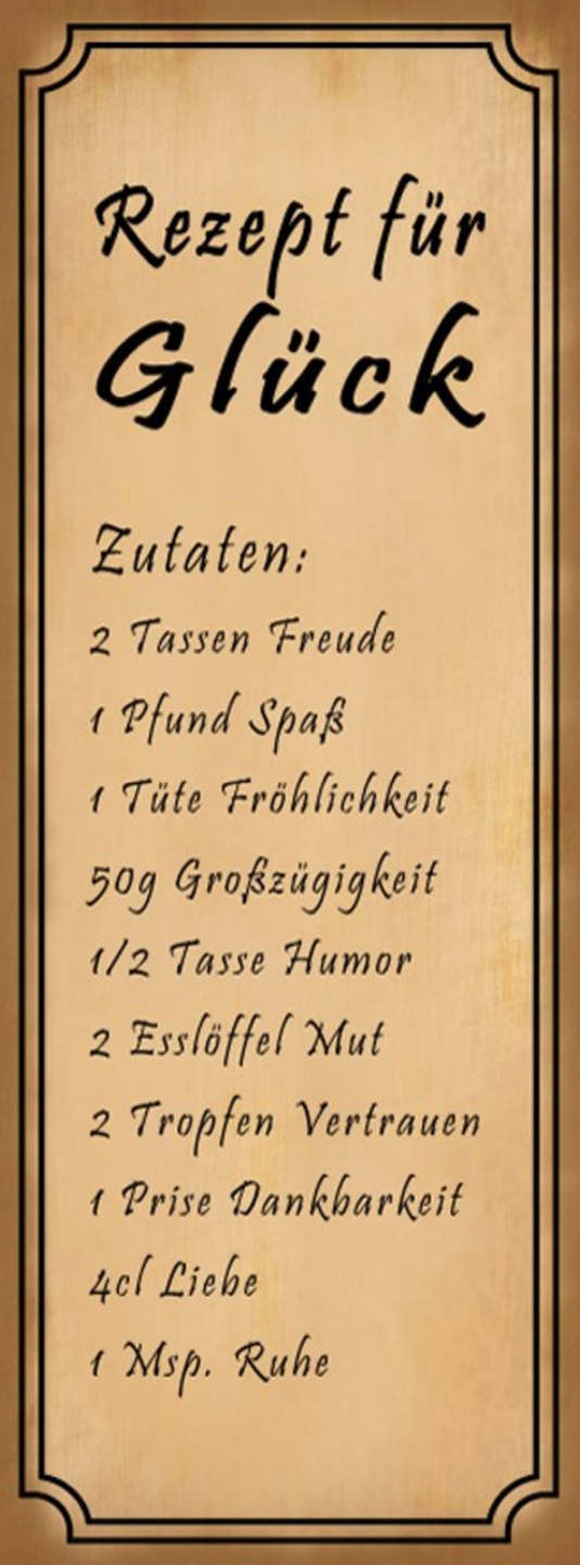 Schild Rezept Für Gesundheit Kraft Geduld Ruhe Vertauen Lachen Glück 27x10