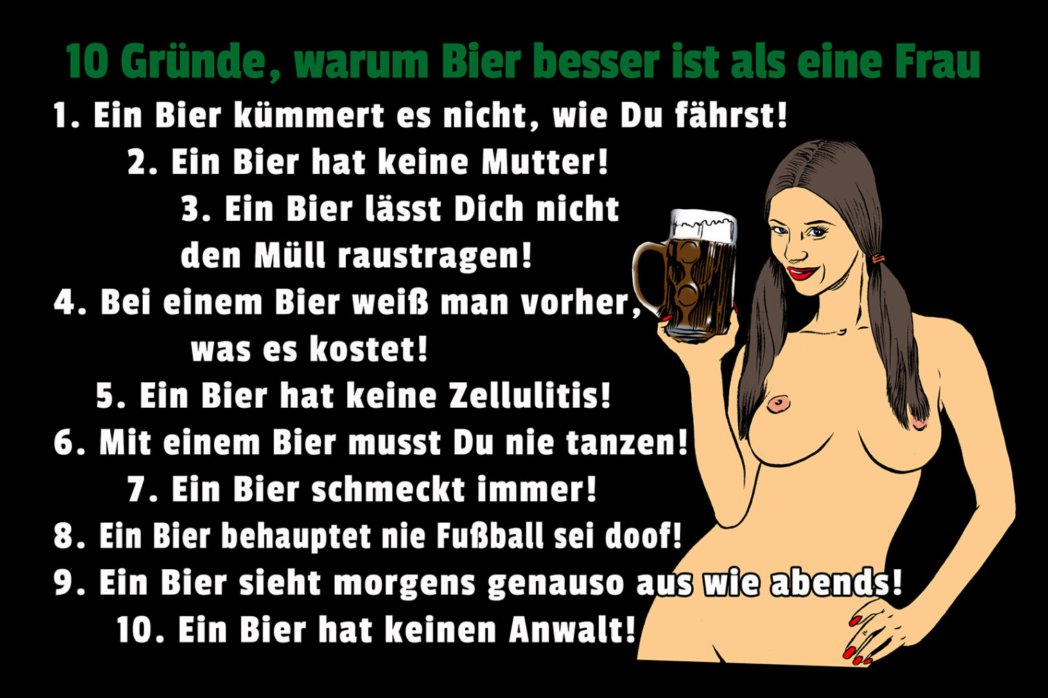 Schild Spruch 10 Gründe warum Bier besser ist als eine Frau Alkohol Sexy JW