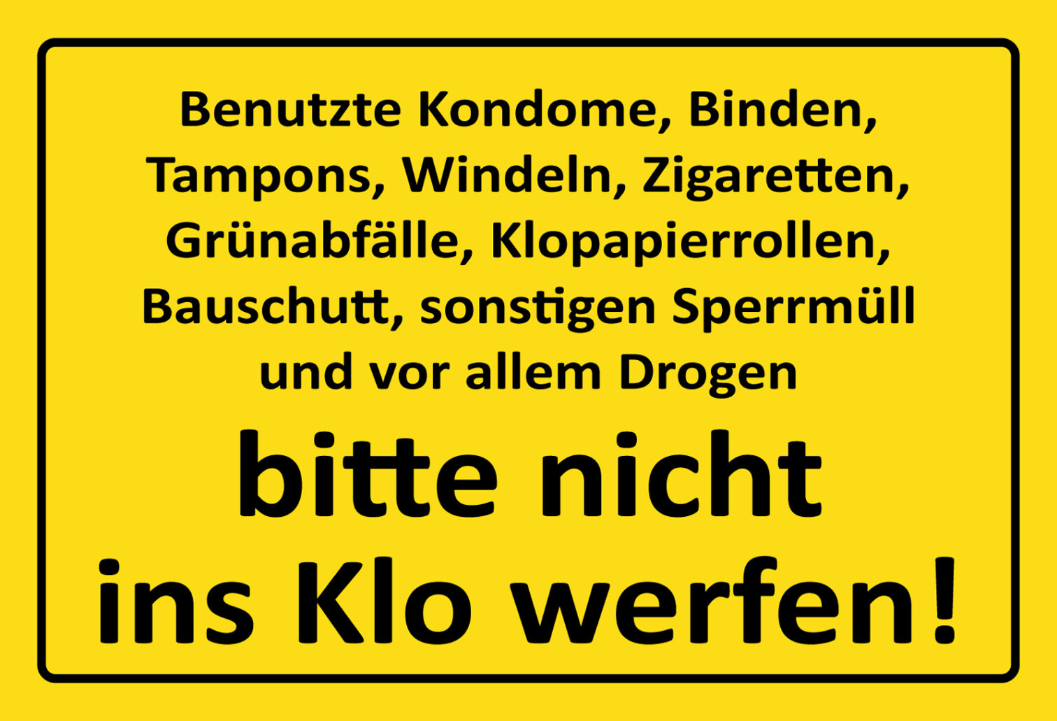Schild Spruch Benutzte Kondome Binden Drogen bitte nicht ins Klo werfen JW