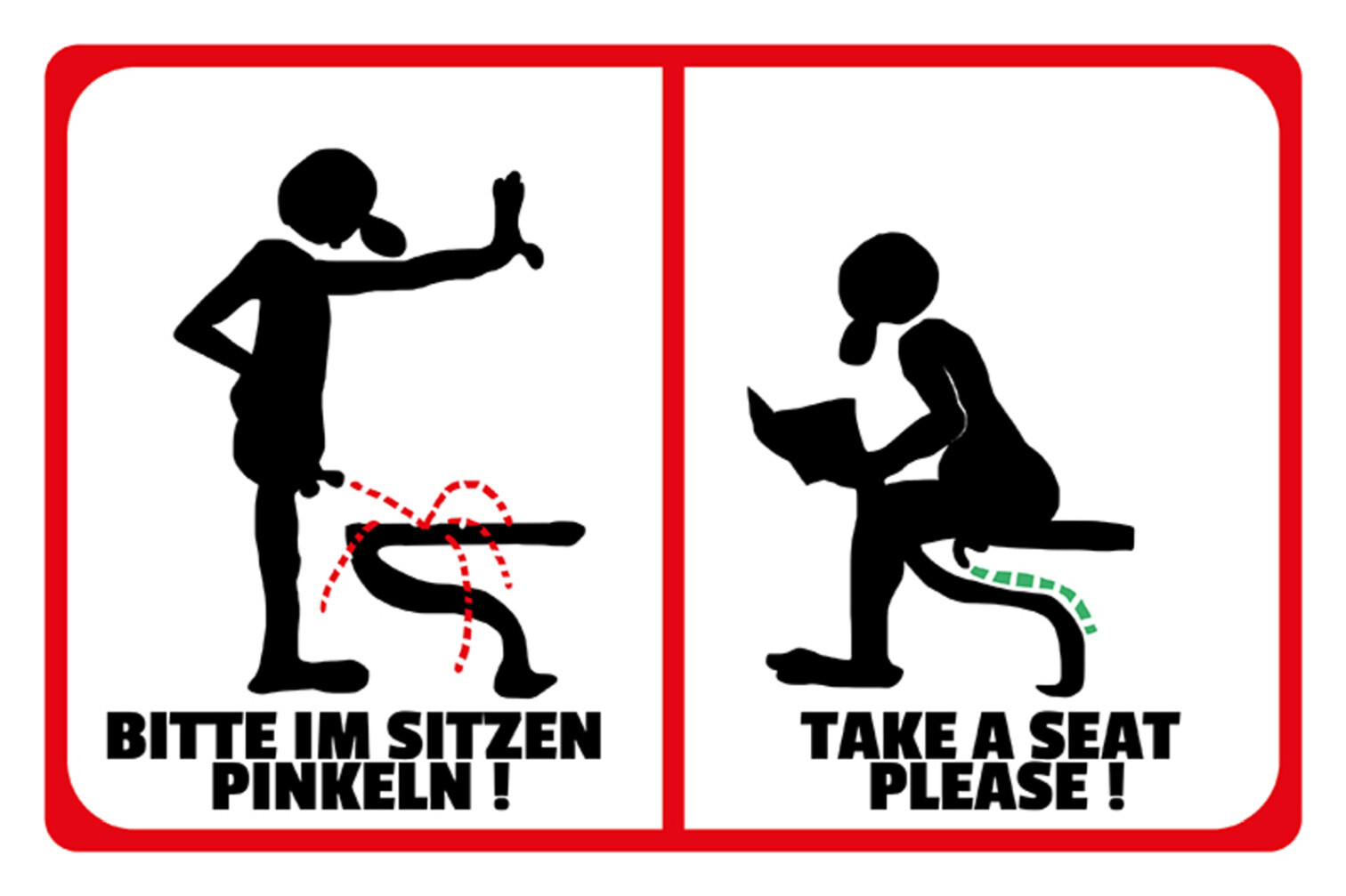 Schild Spruch Bitte im Sitzen pinkeln Take a seat please Toilette JW