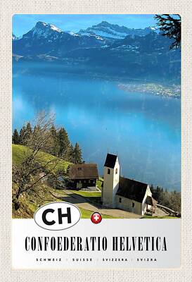 Schild spruch confoederatio helvetica switzerland schweiz see berge kirche jw