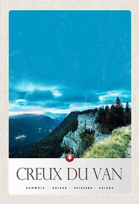 Schild spruch creux du van switzerland schweiz berge felswand wald jw