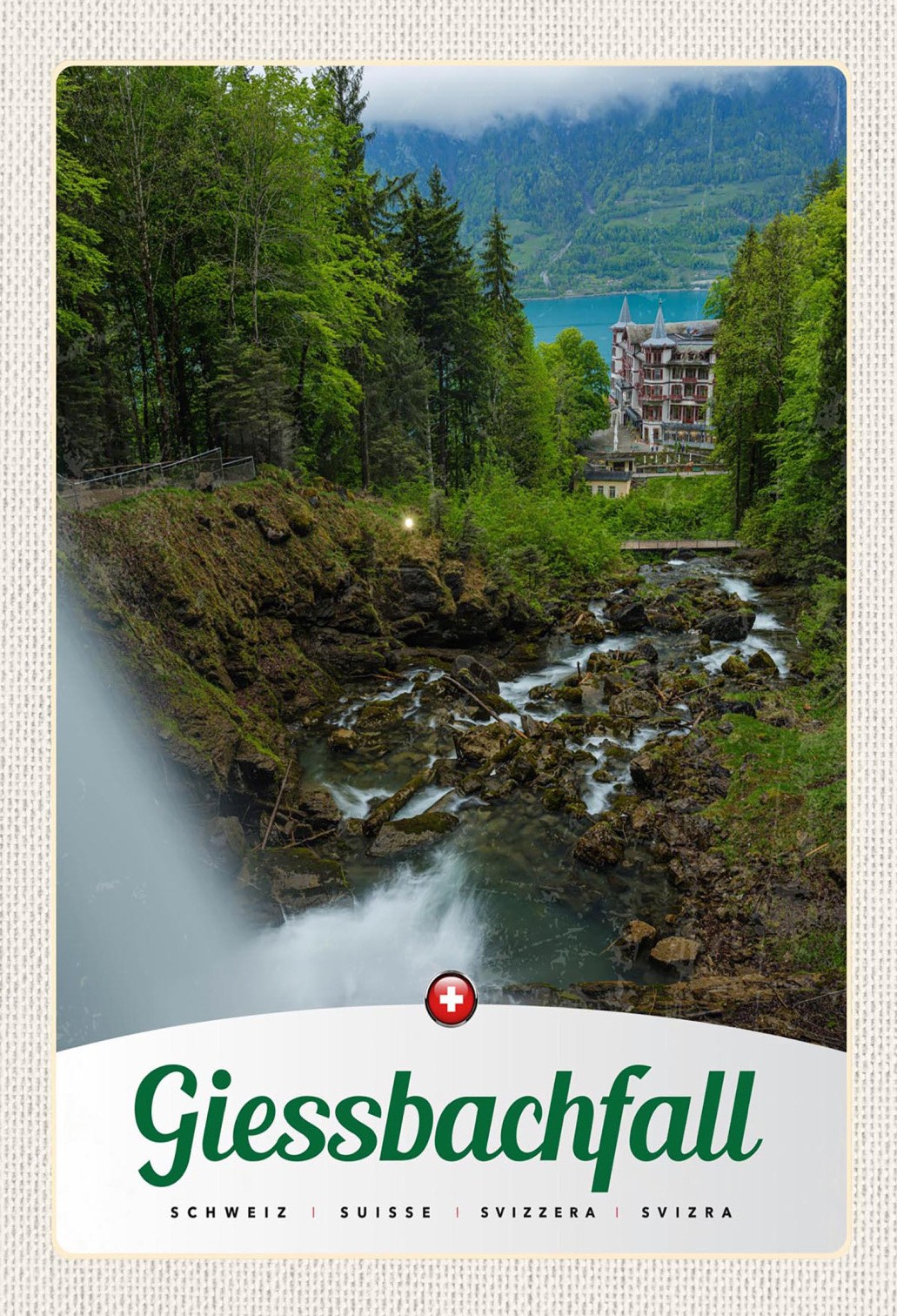 Schild Spruch Giessbachfall Wasserfall Switzerland Schweiz Wald Häuser JW