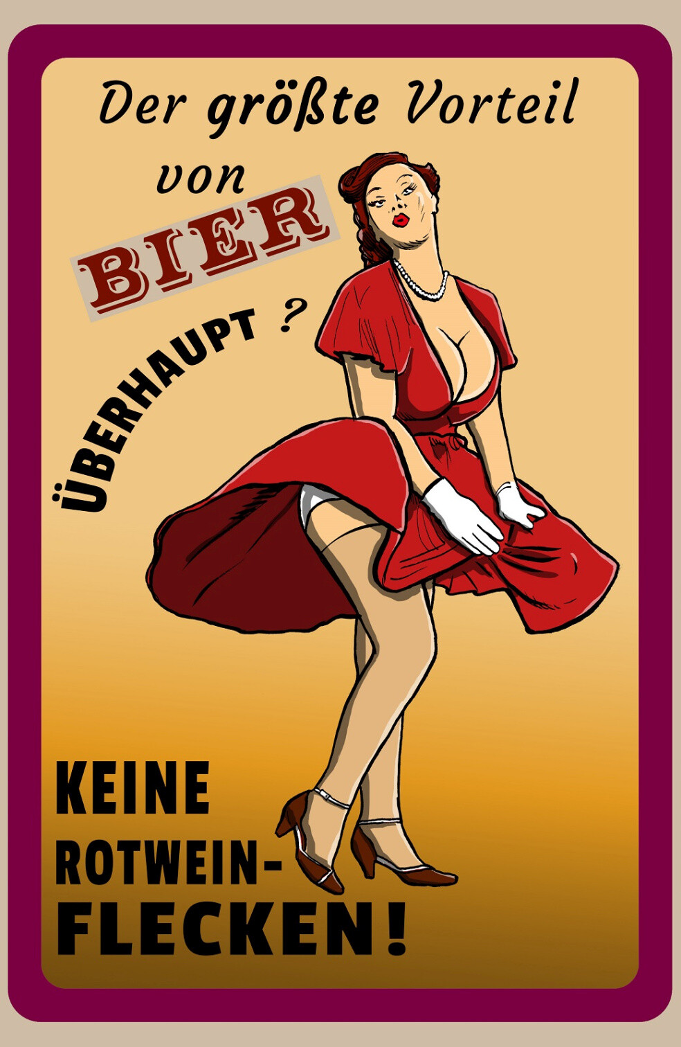 Schild Spruch Größter Vorteil von Bier Kene Rotweinflecken Alkohol Sexy JW