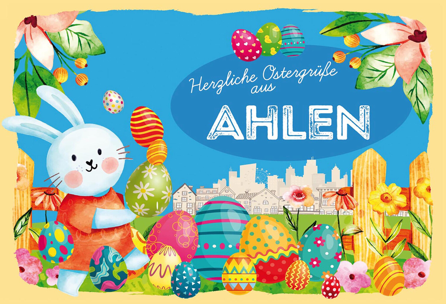Schild Spruch Herzliche Ostergrüße aus Ahlen Osterhase Eier Comic JW