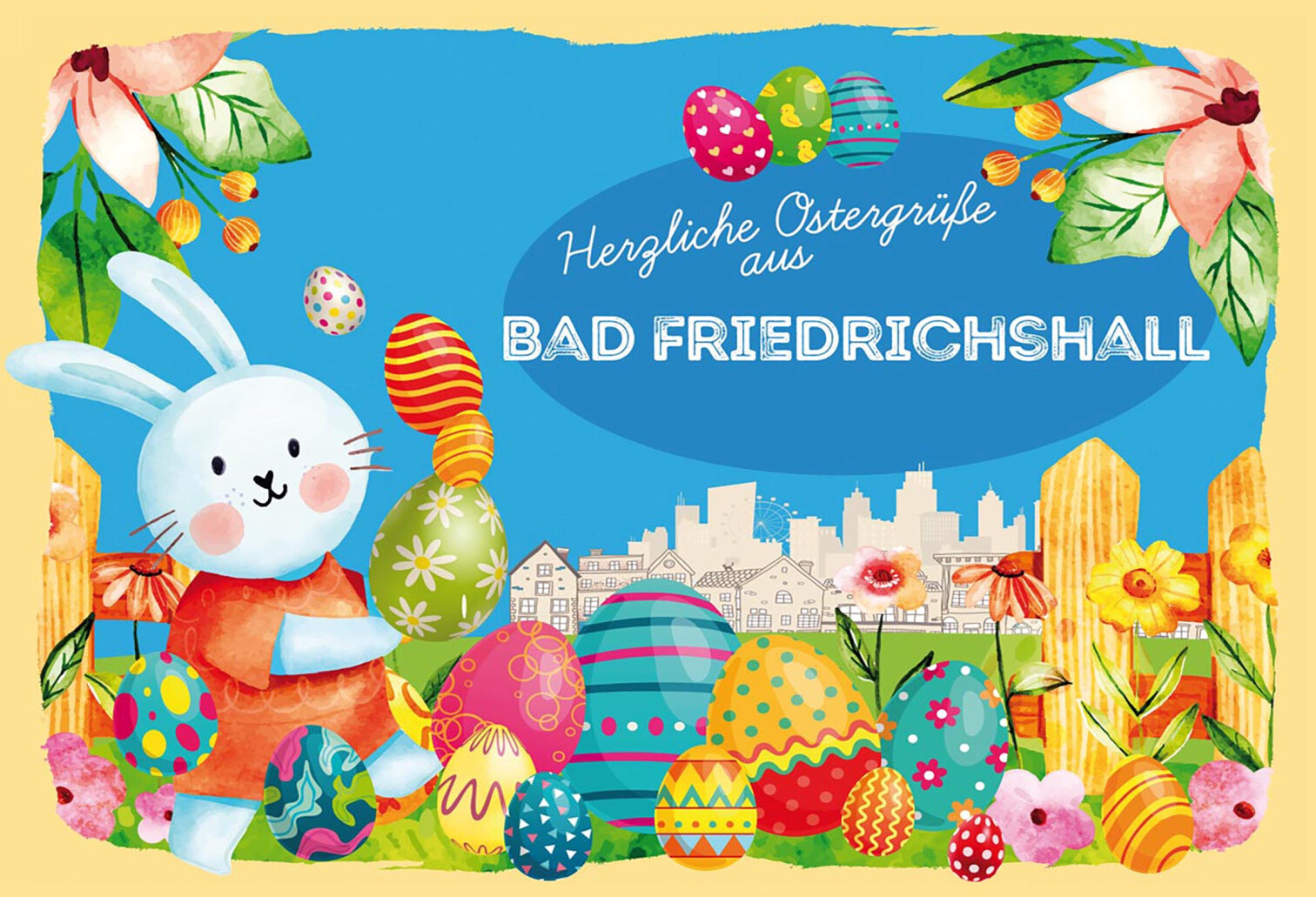 Schild Spruch Herzliche Ostergrüße aus Bad Friedrichshall Osterhase Comic JW